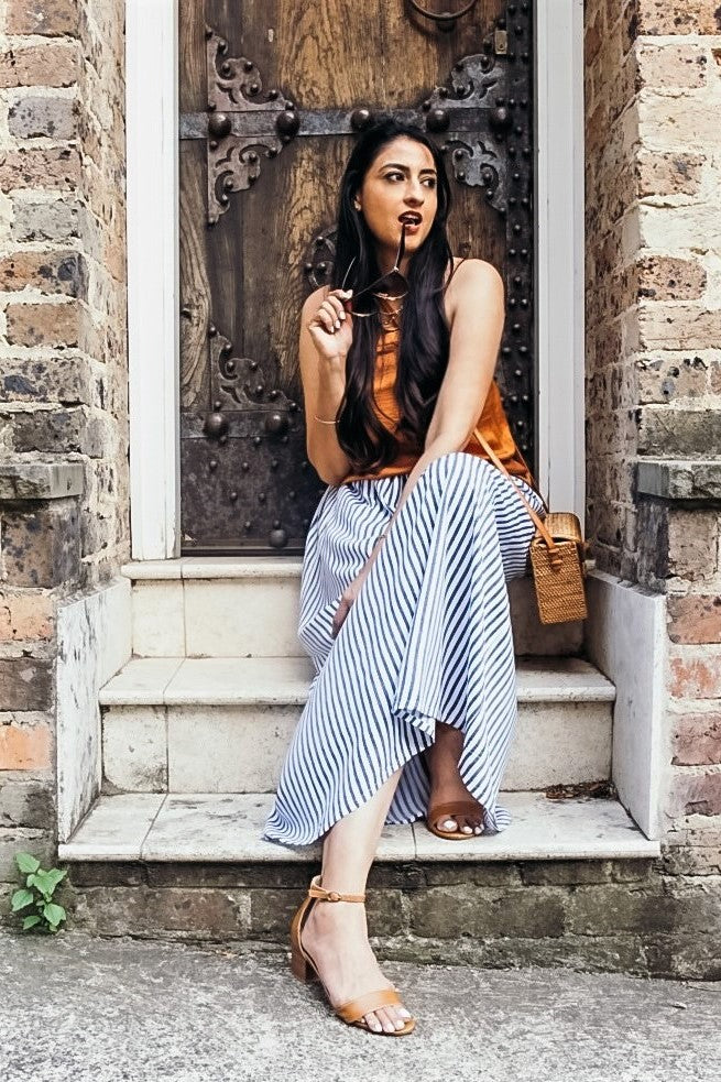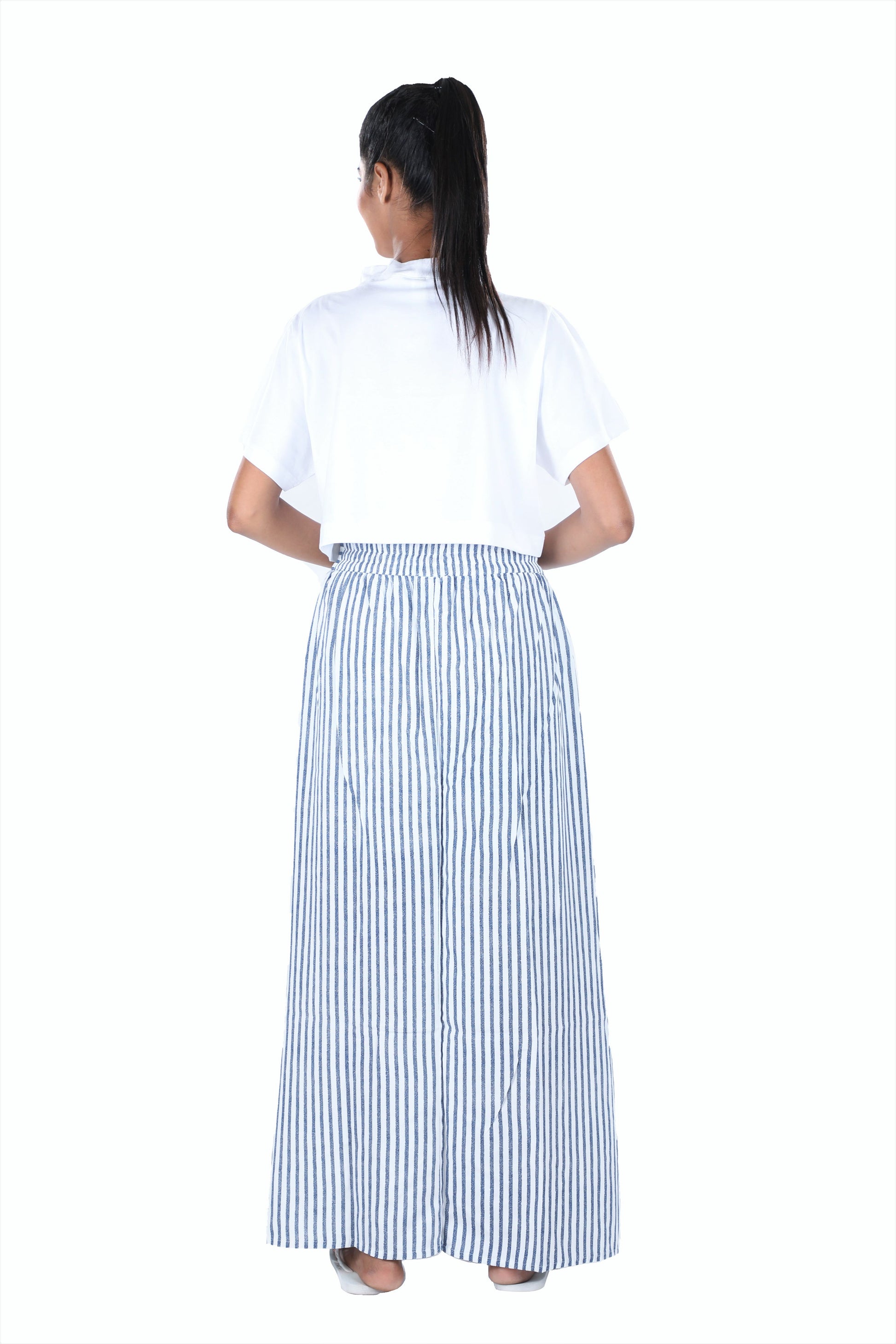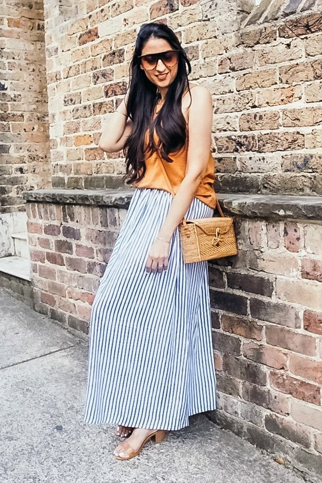 Womens Blue White Striped Long Skirt