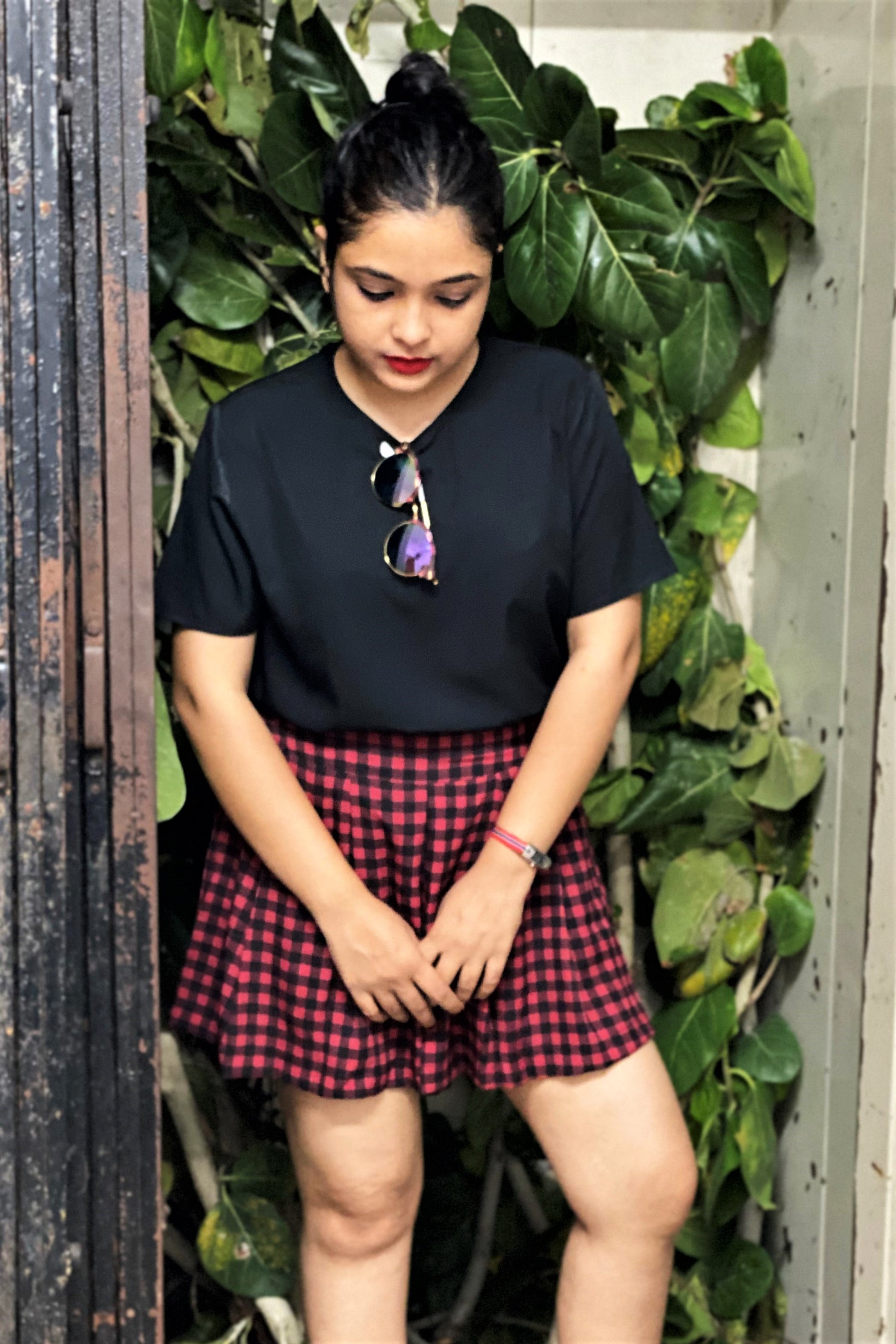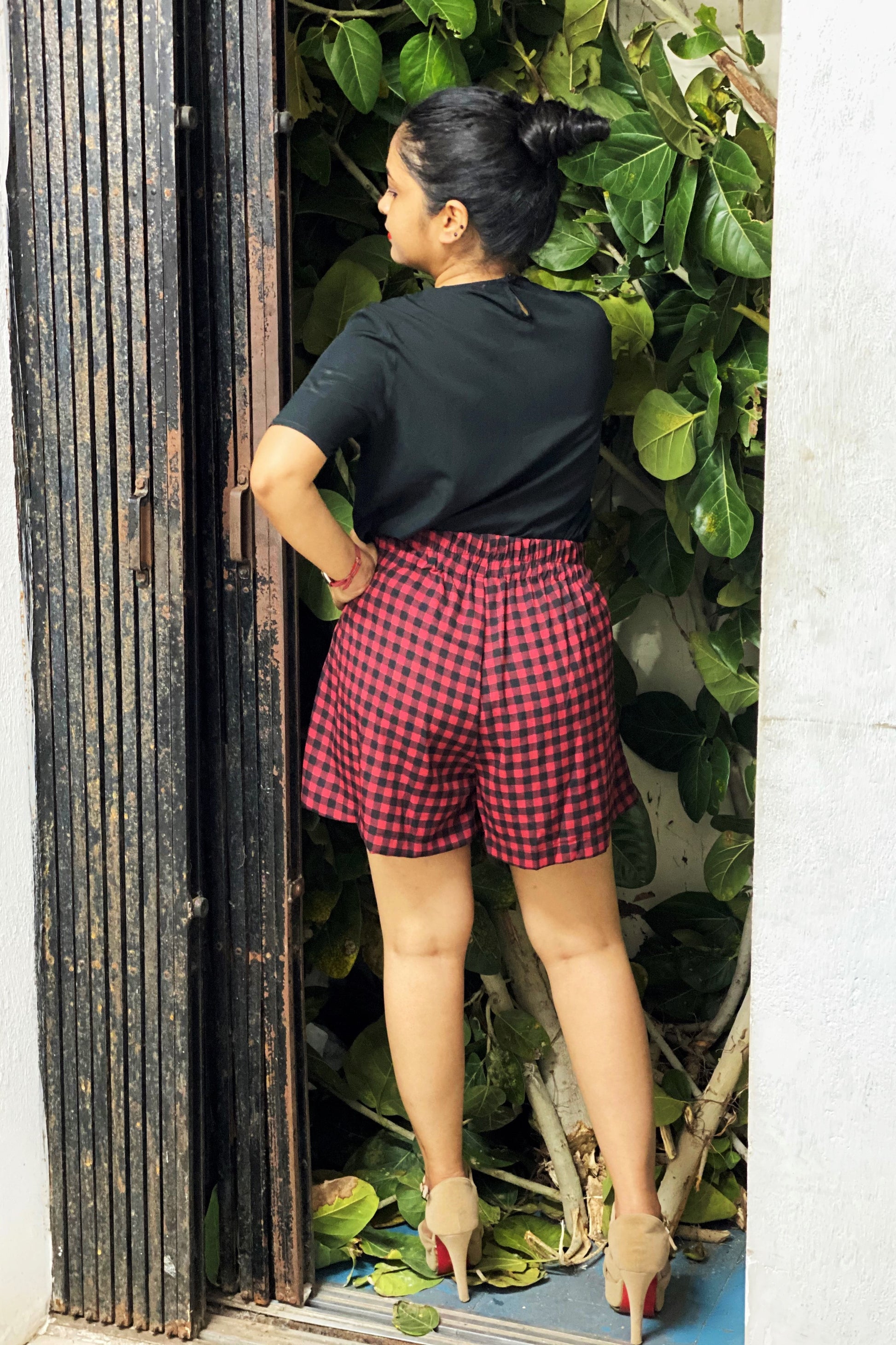 Women's Skorts Combo (Pack of 2) Red Checks and Black
