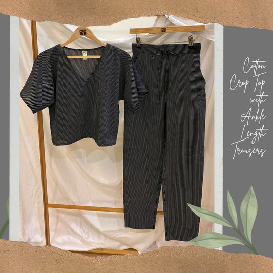 Women's Cotton Crop Top with Ankle Length Trousers Set
